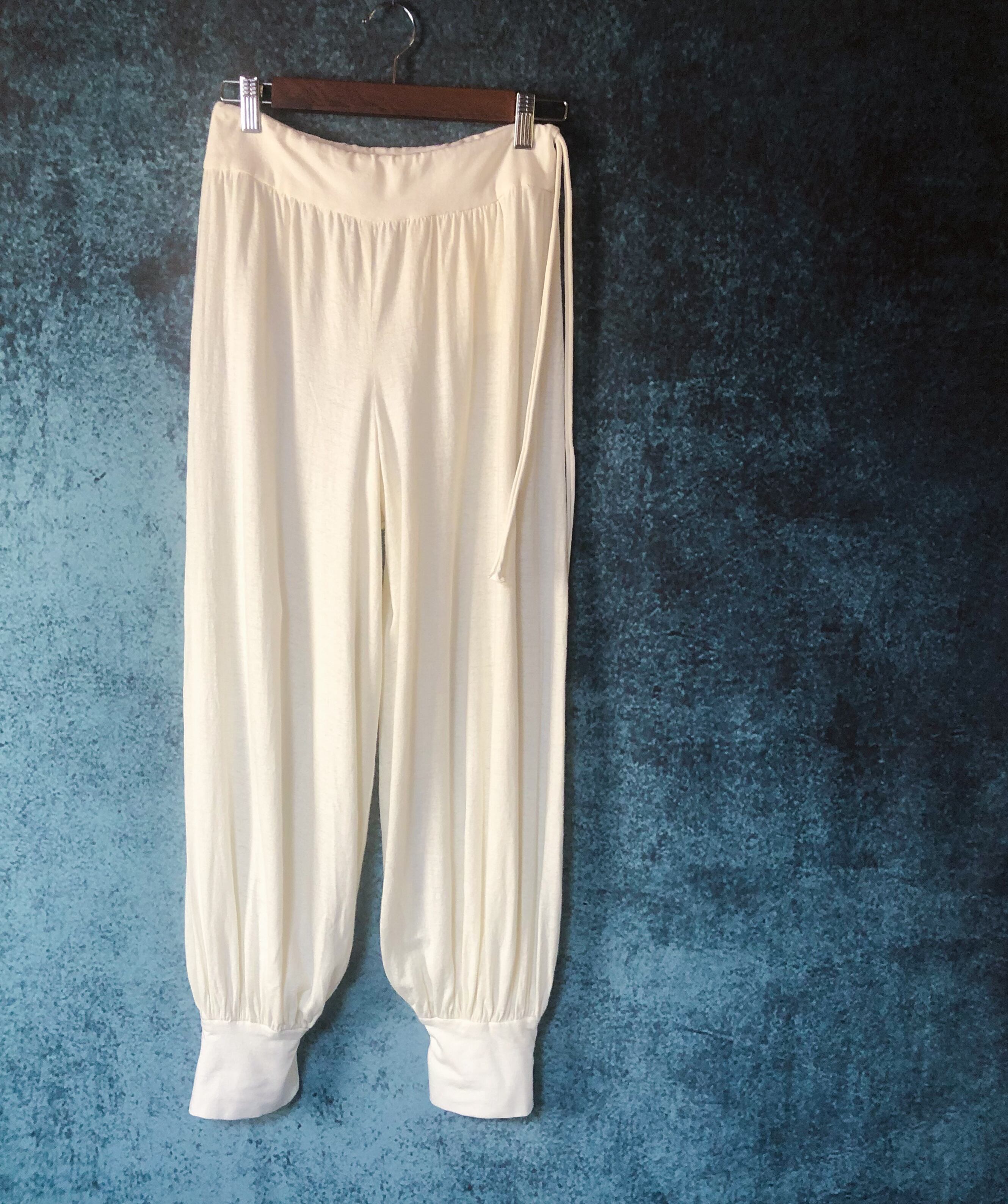 やわらかくて軽いヘンプとオーガニックコットンのジャージ素材が心地よいギャザーパンツです。