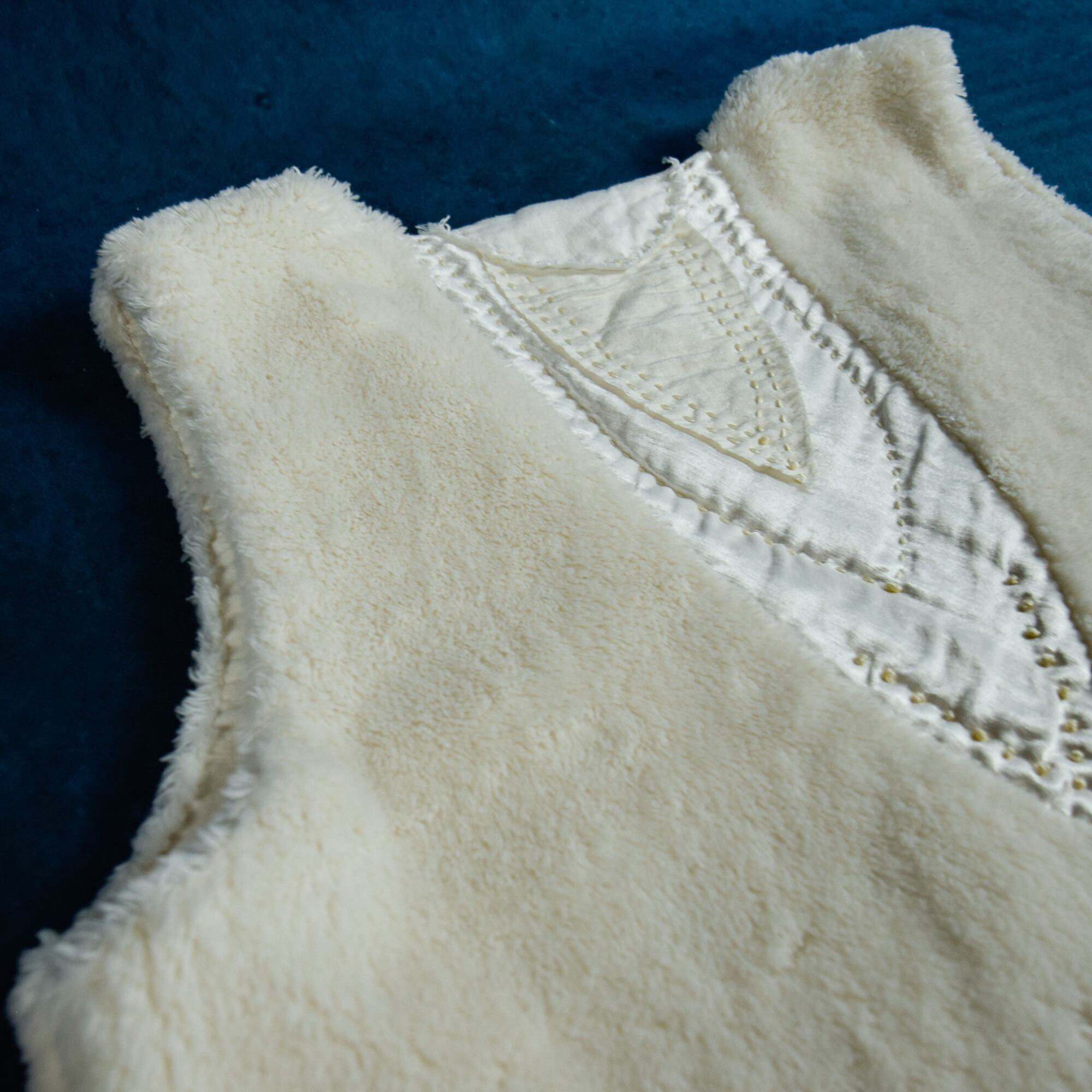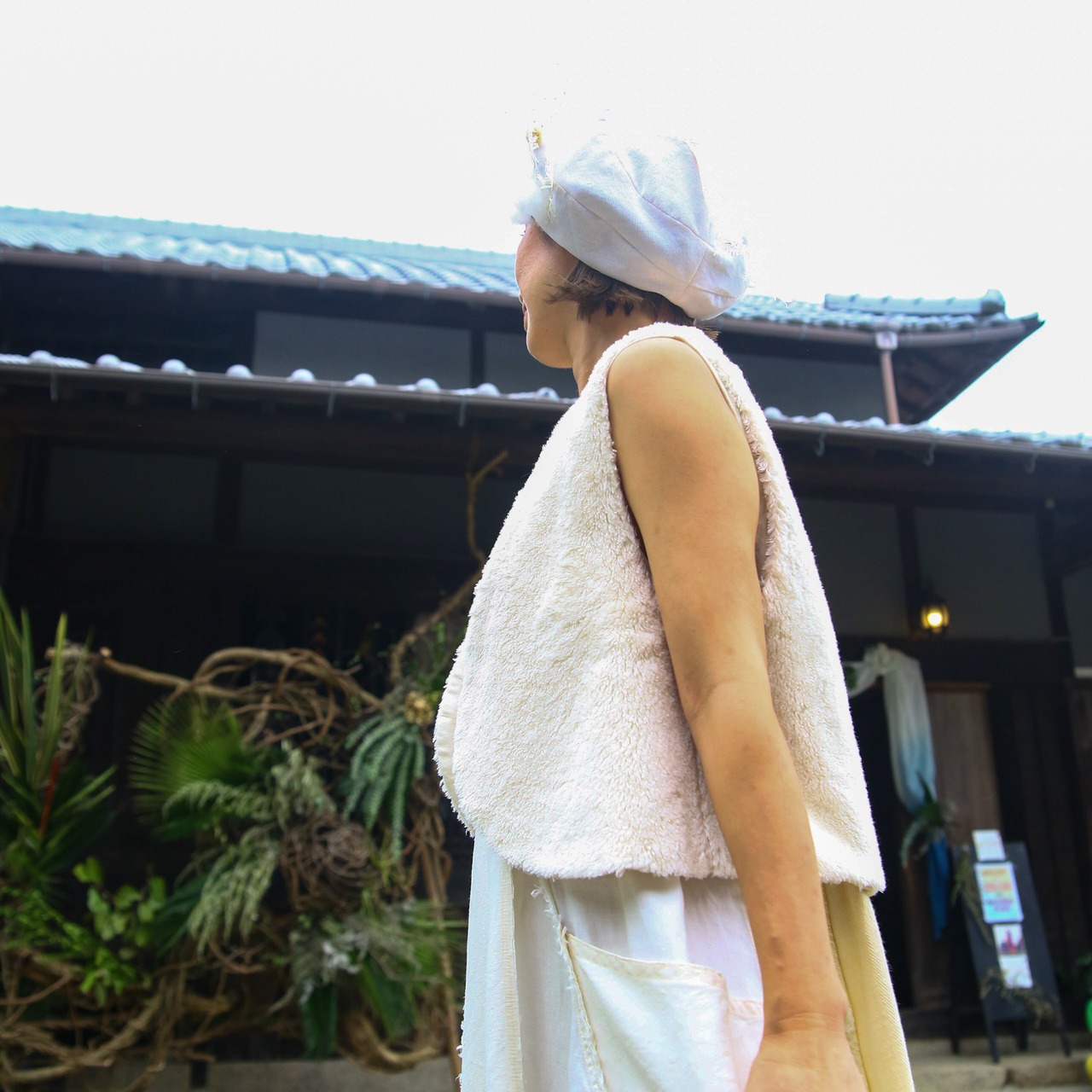 肌に優しいふわふわのオーガニックコットンファー素材をベストに仕立てました。