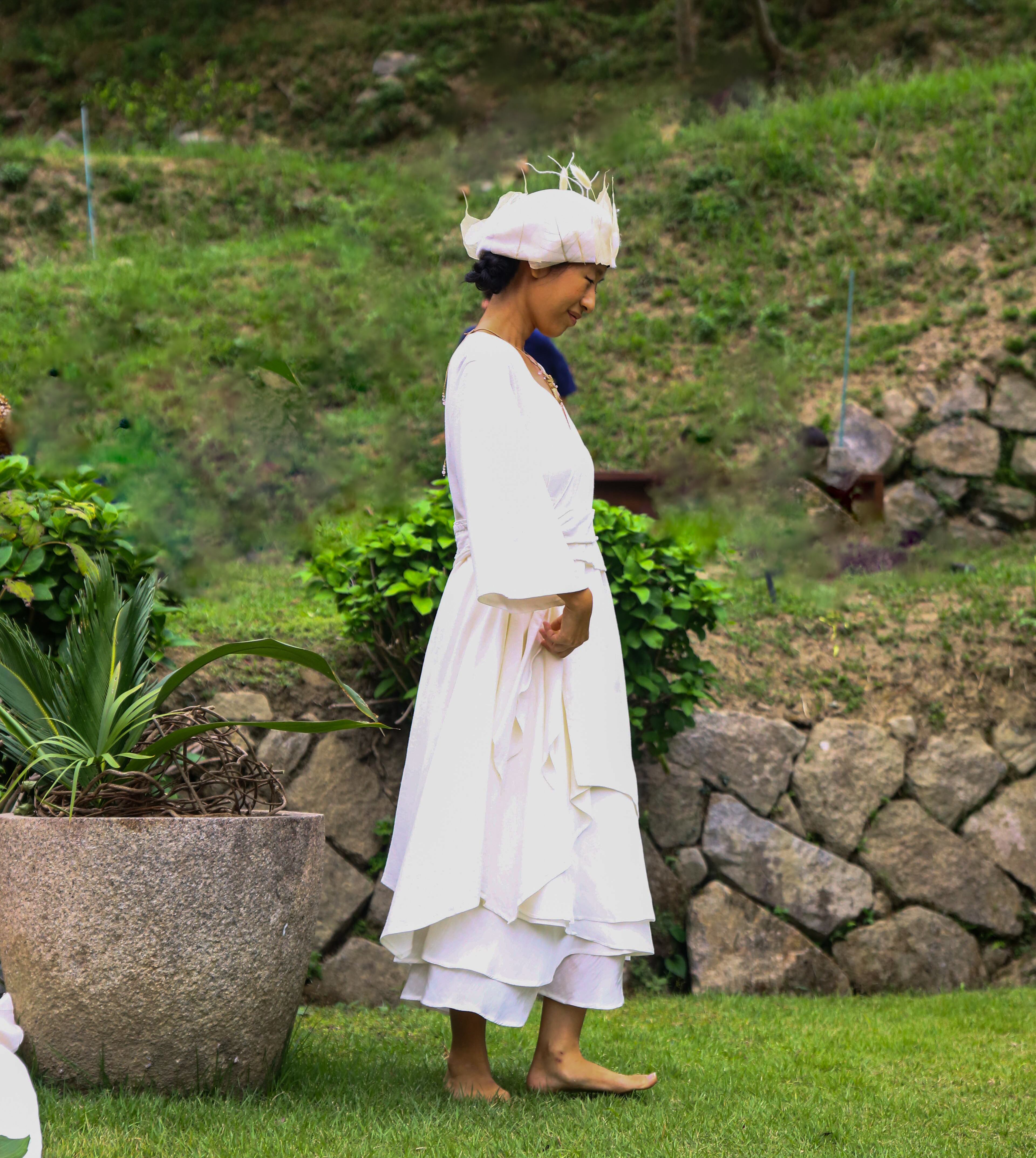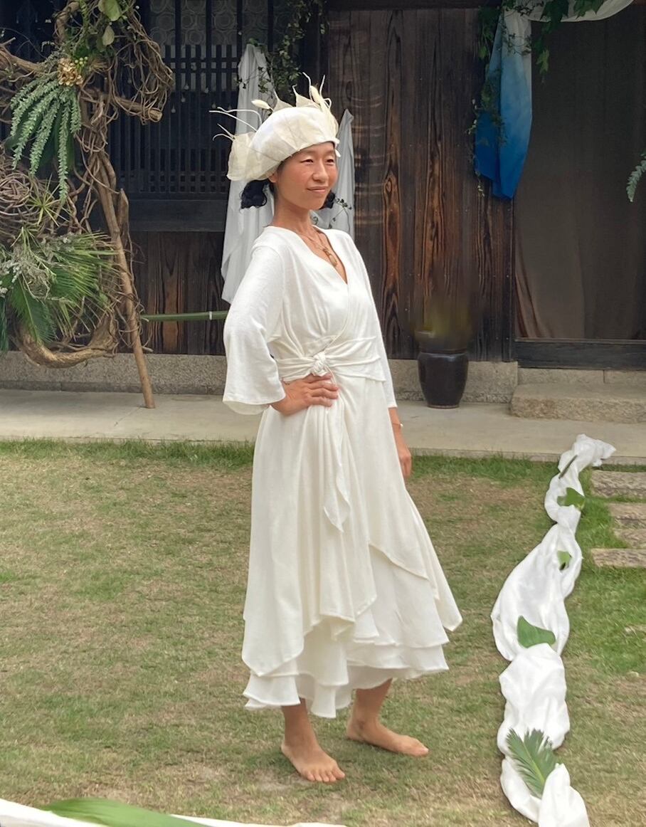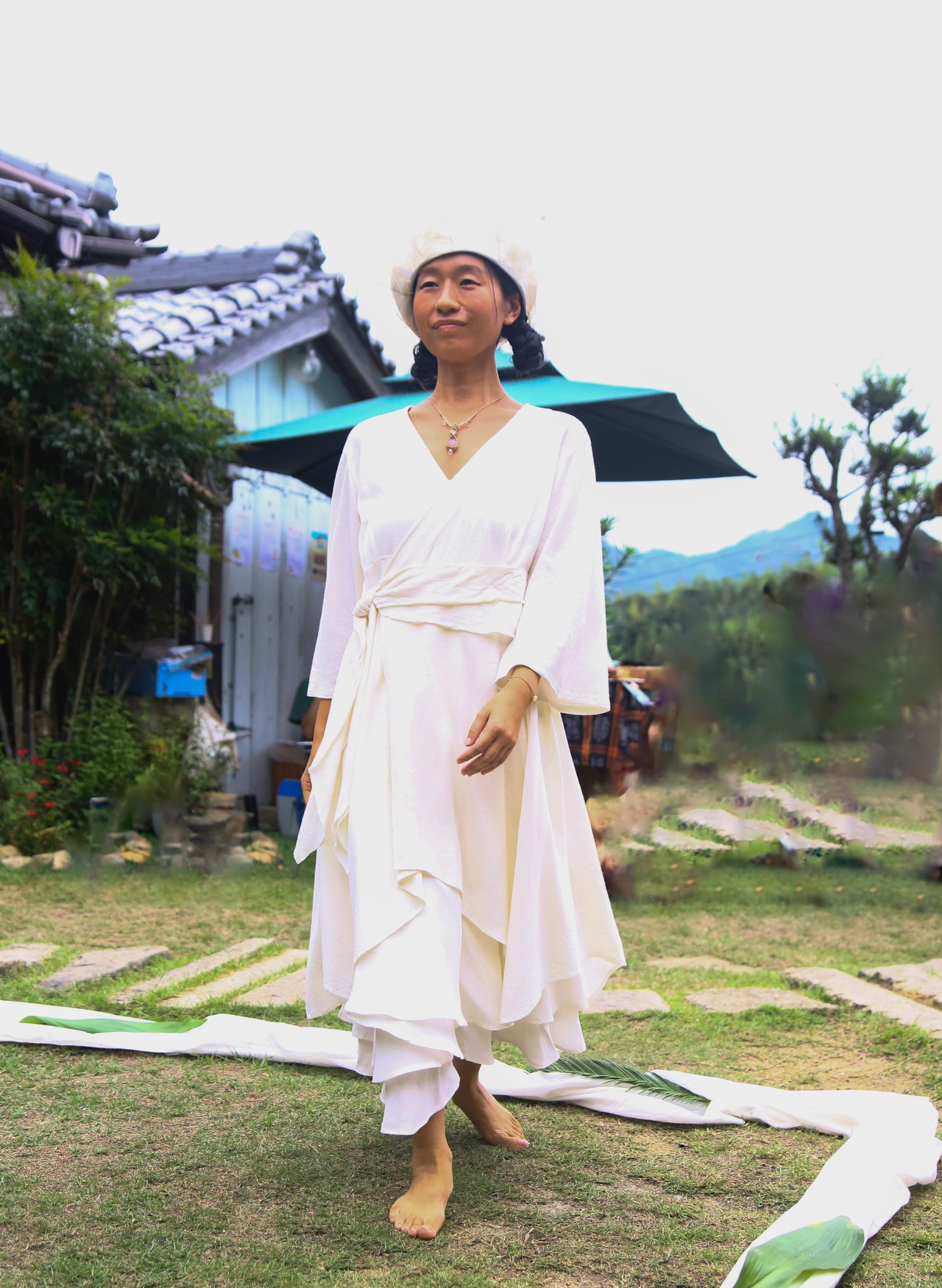ヘンプとオーガニックコットンのこちらの素材は、軽やかで柔らかな生地を使用しており、長時間の着用でも心地よく動きやすく、さらりとした肌触りと大変軽い着心地は、まるで風を纏っている様です。