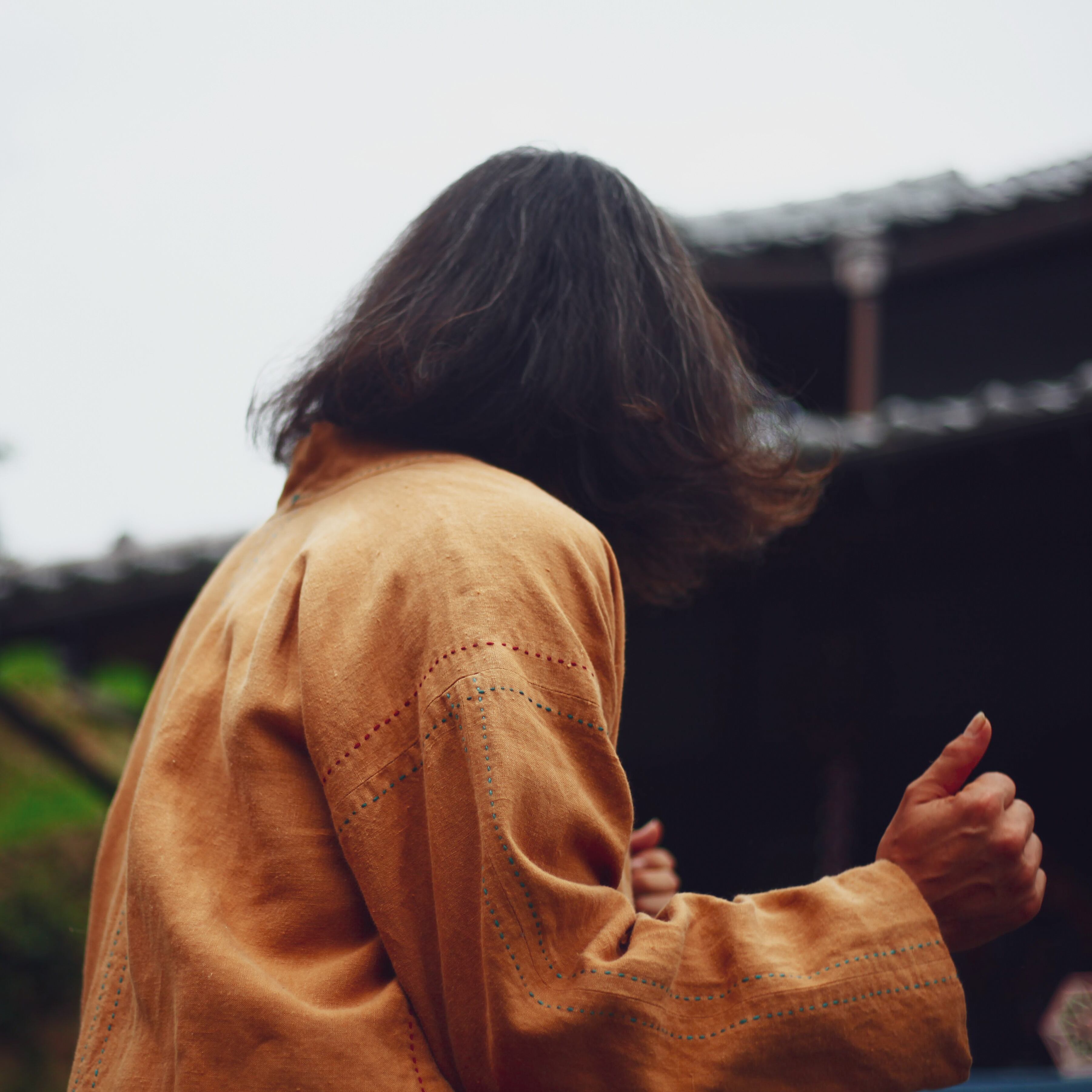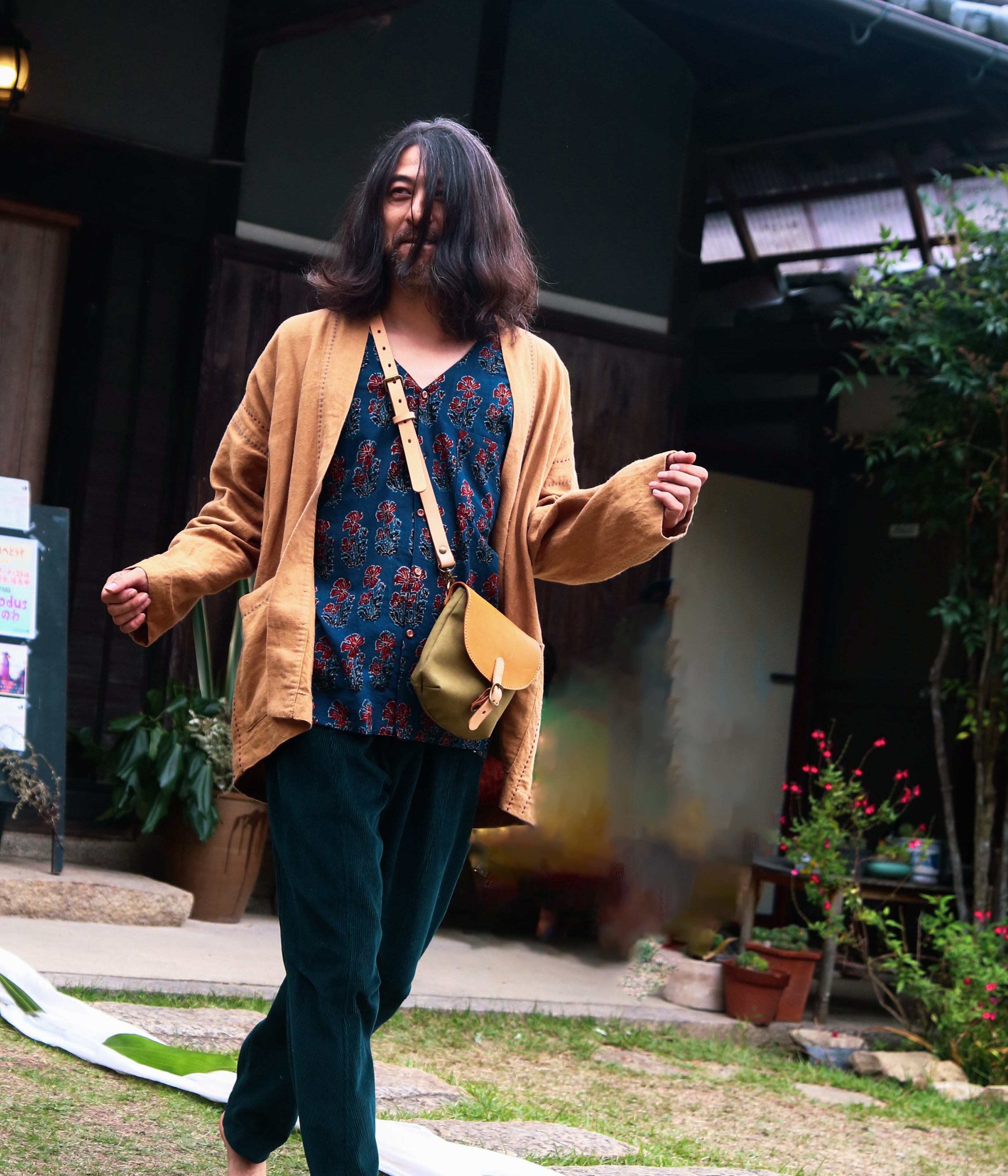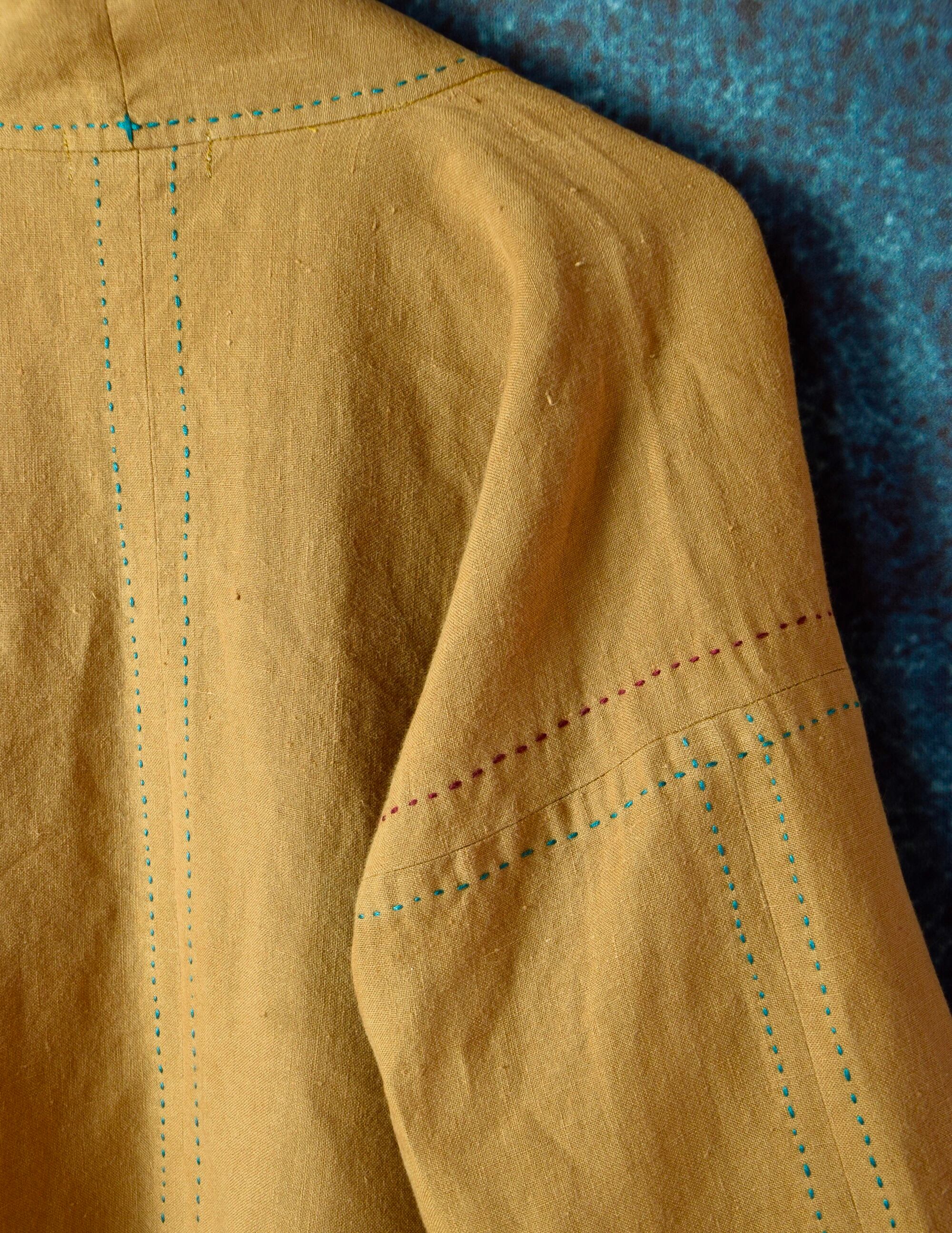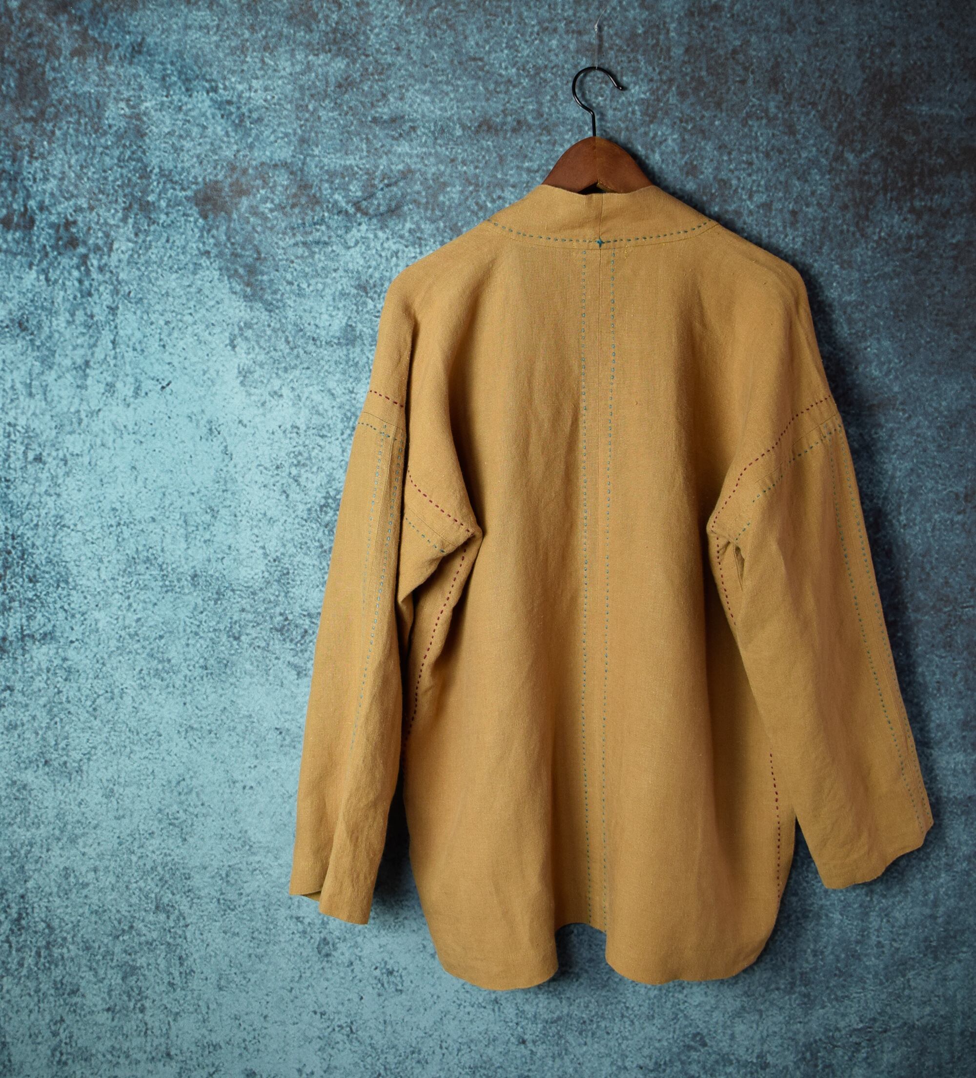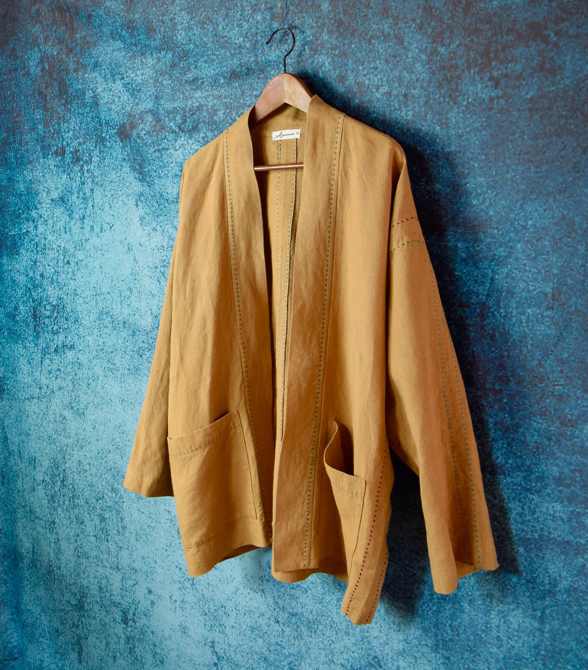 柿渋染めの中肉のリネン100%の生地でお仕立てした、羽織りジャケットは、伝統的な日本の美意識を現代的に表現したアイテムです。