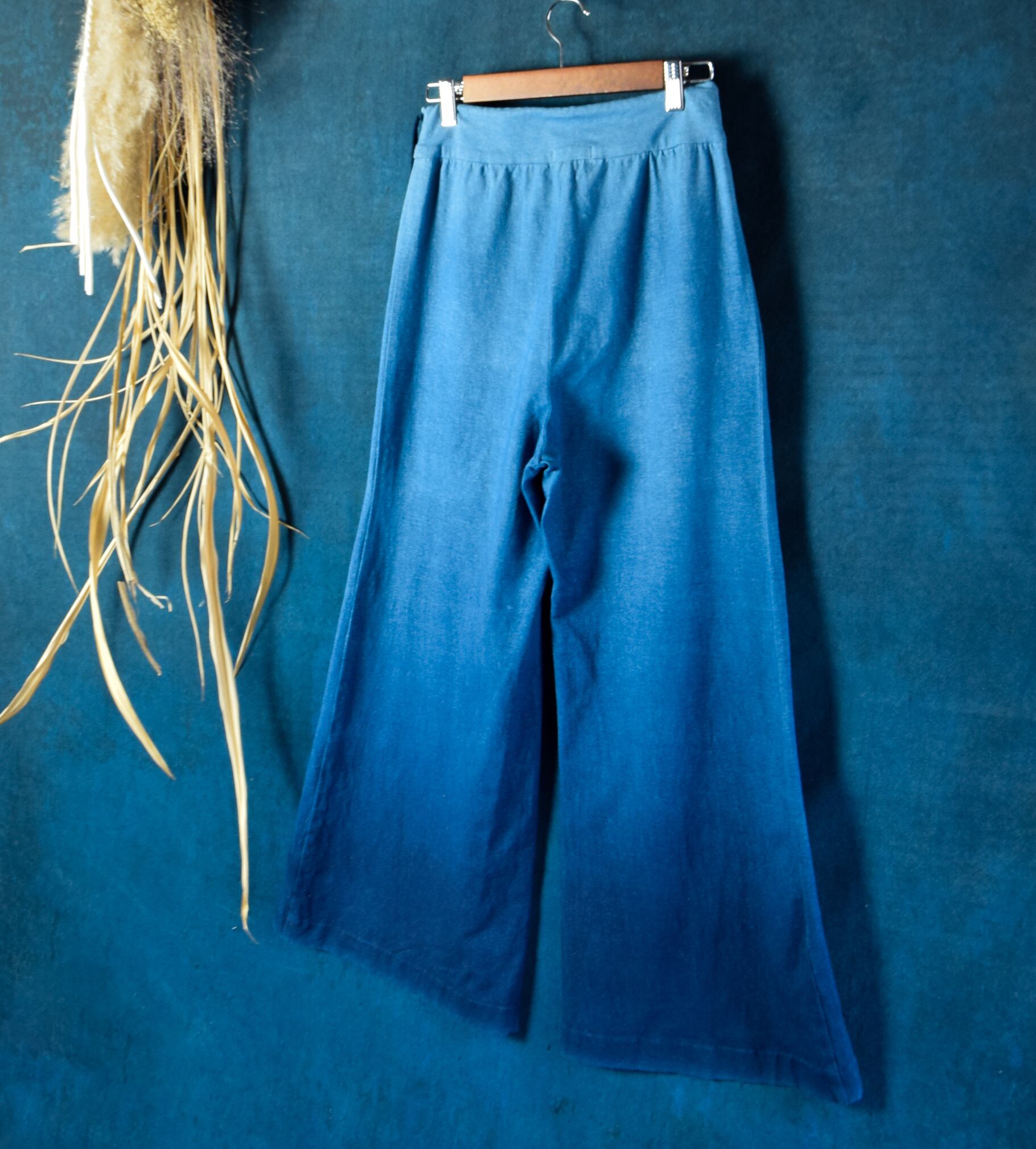 自然の恵みを感じる、グラデーションが美しい藍染めの履き心地抜群のヘンプストレッチパンツです。ヘンプとオーガニックコットンの温かく優しい素材感が特徴で、締め付けず、お腹から下半身をすっぽりと包み込む、至福の心地よさ、極上の着心地をご体感いただけます。