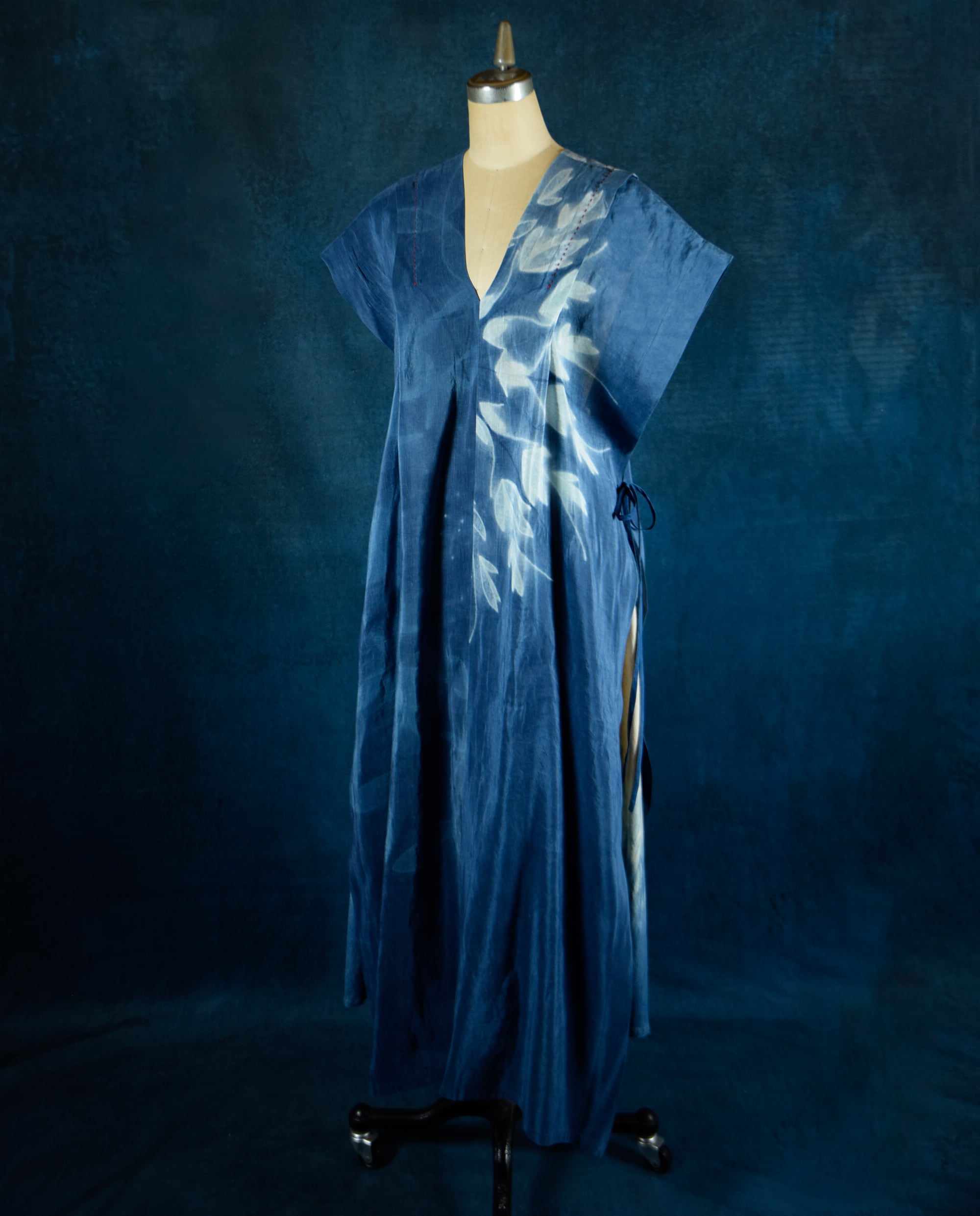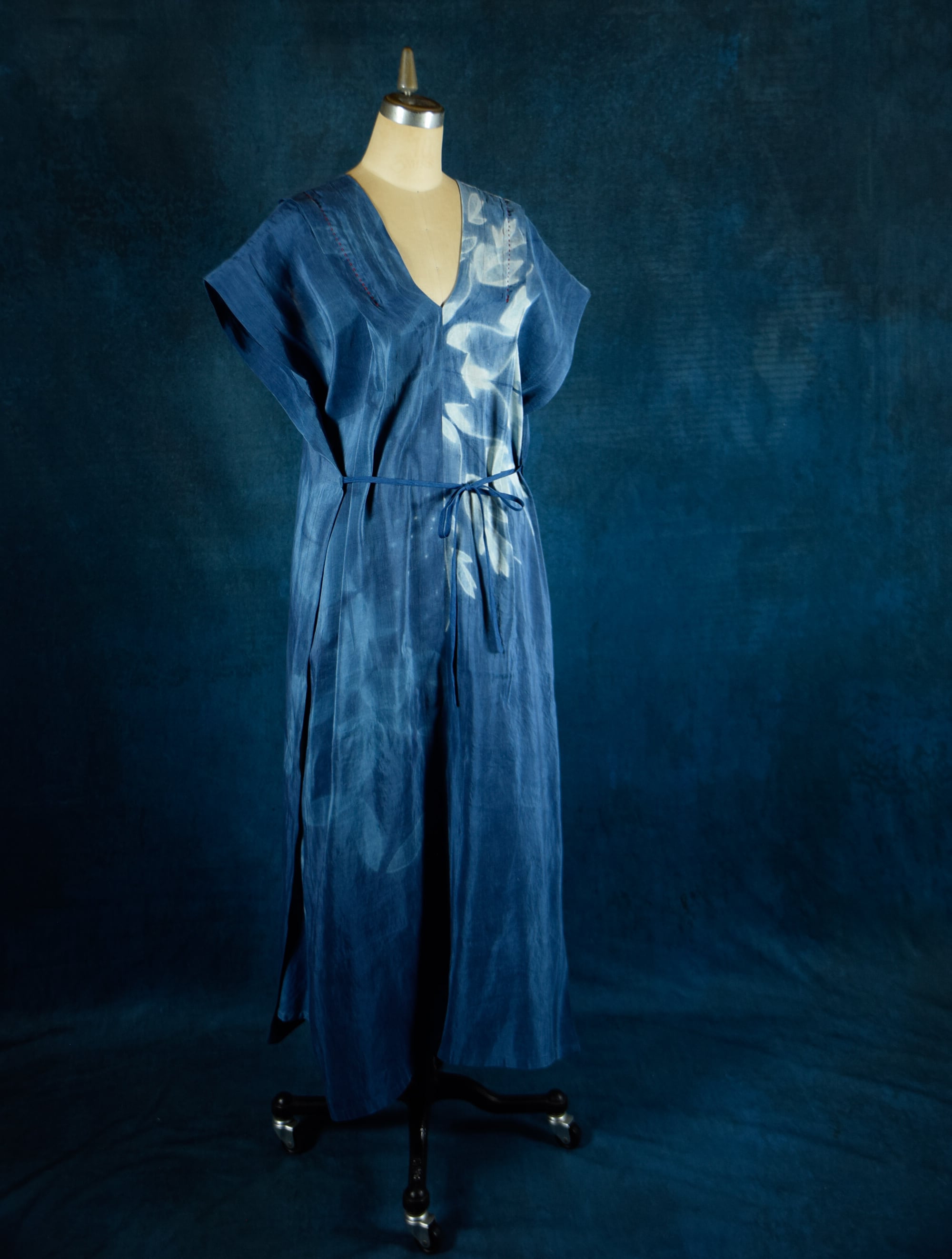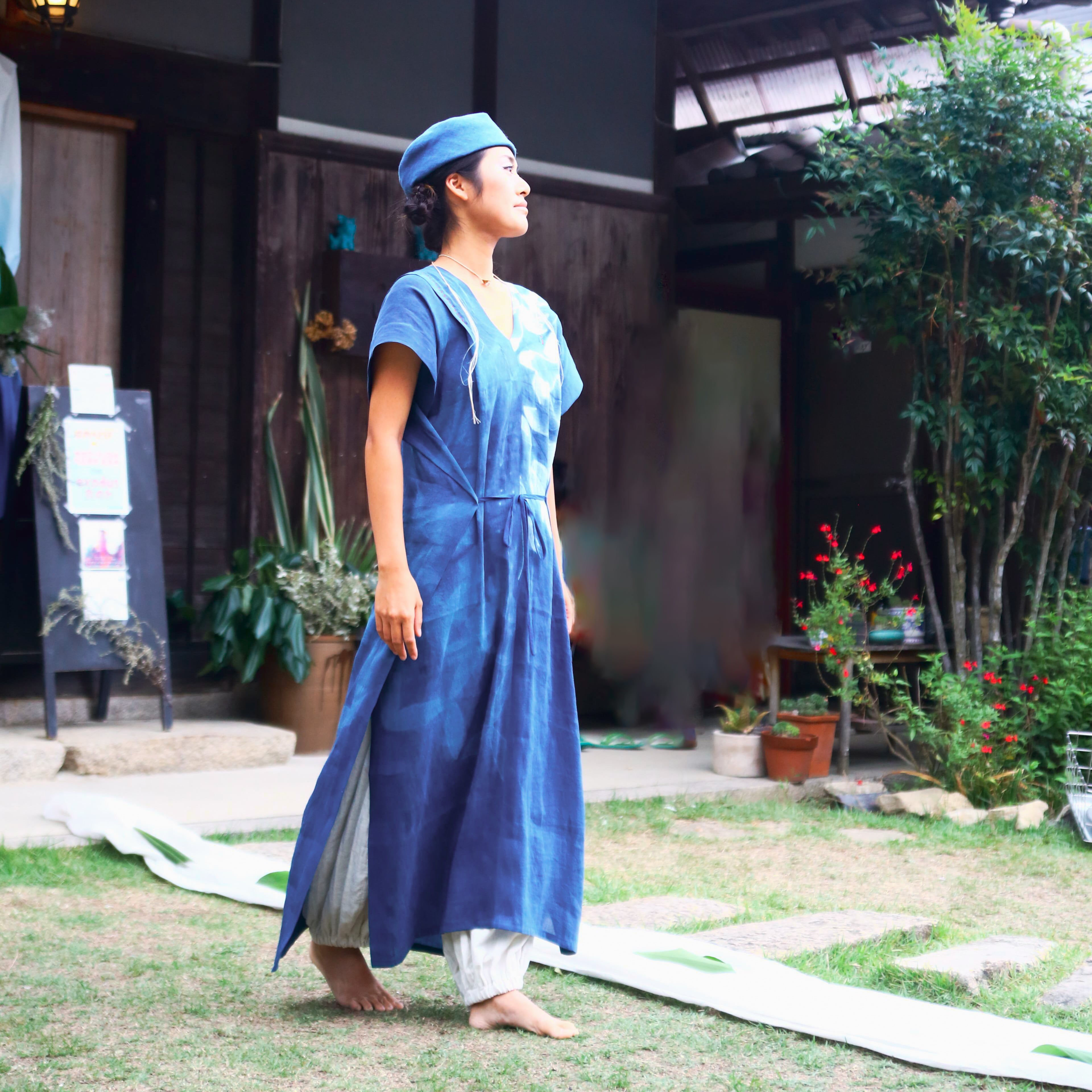 ヘンプシルク✴︎絞り藍染めワンピース【Agua】
