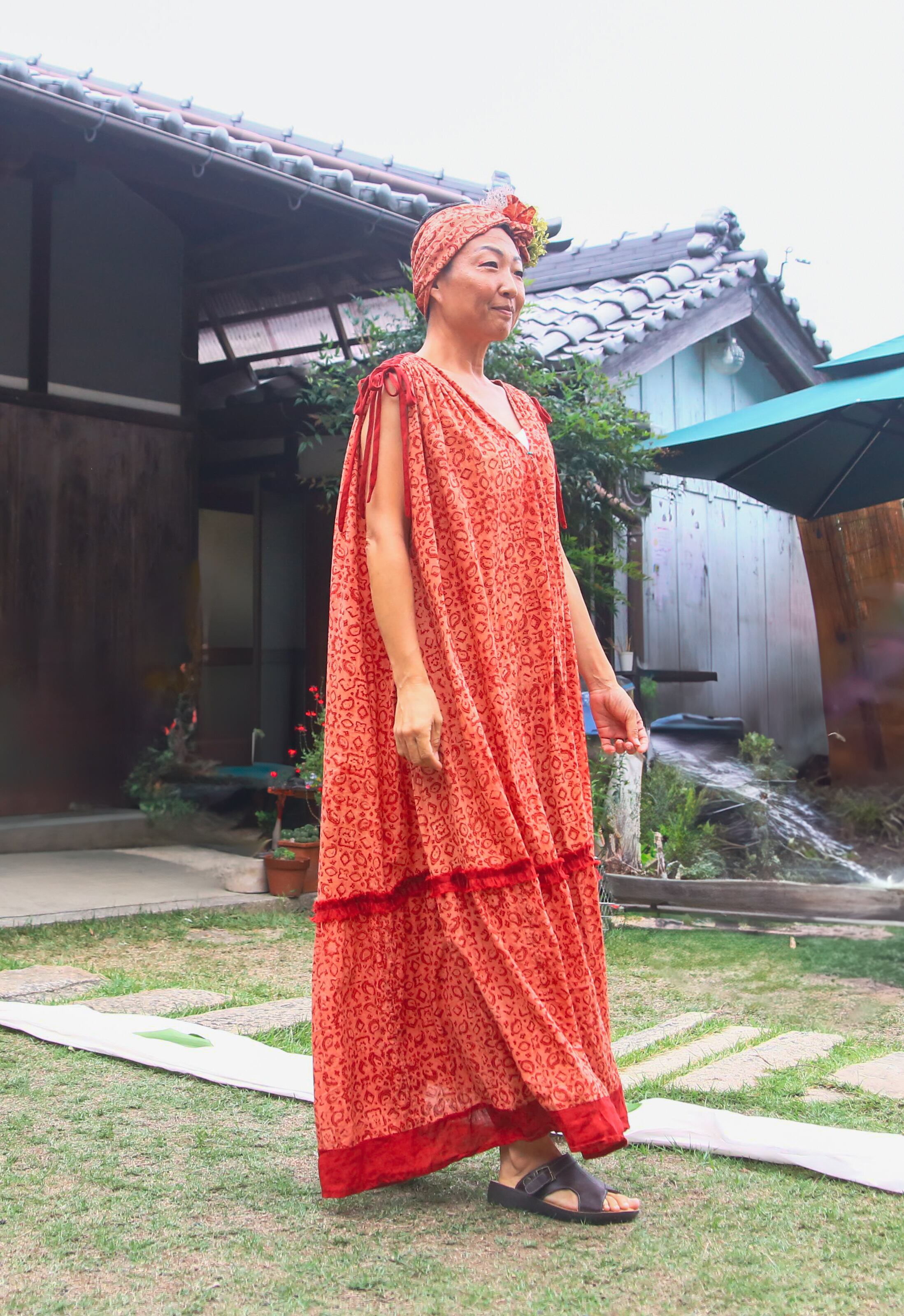 ◆軽やかな着心地✴︎ブロックプリントギャザードレス